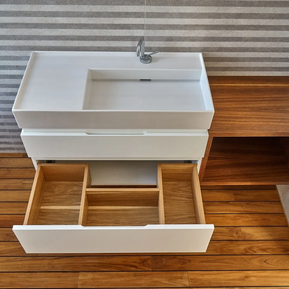 Montujemy również gotowe meble łazienkowych dostępnych w sieciach handlowych. Całość prac prowadzona jest w sposób umożliwiający estetyczne ukrycie instalacji oraz zachowanie funkcjonalności i trwałości zabudowy w warunkach podwyższonej wilgotności.